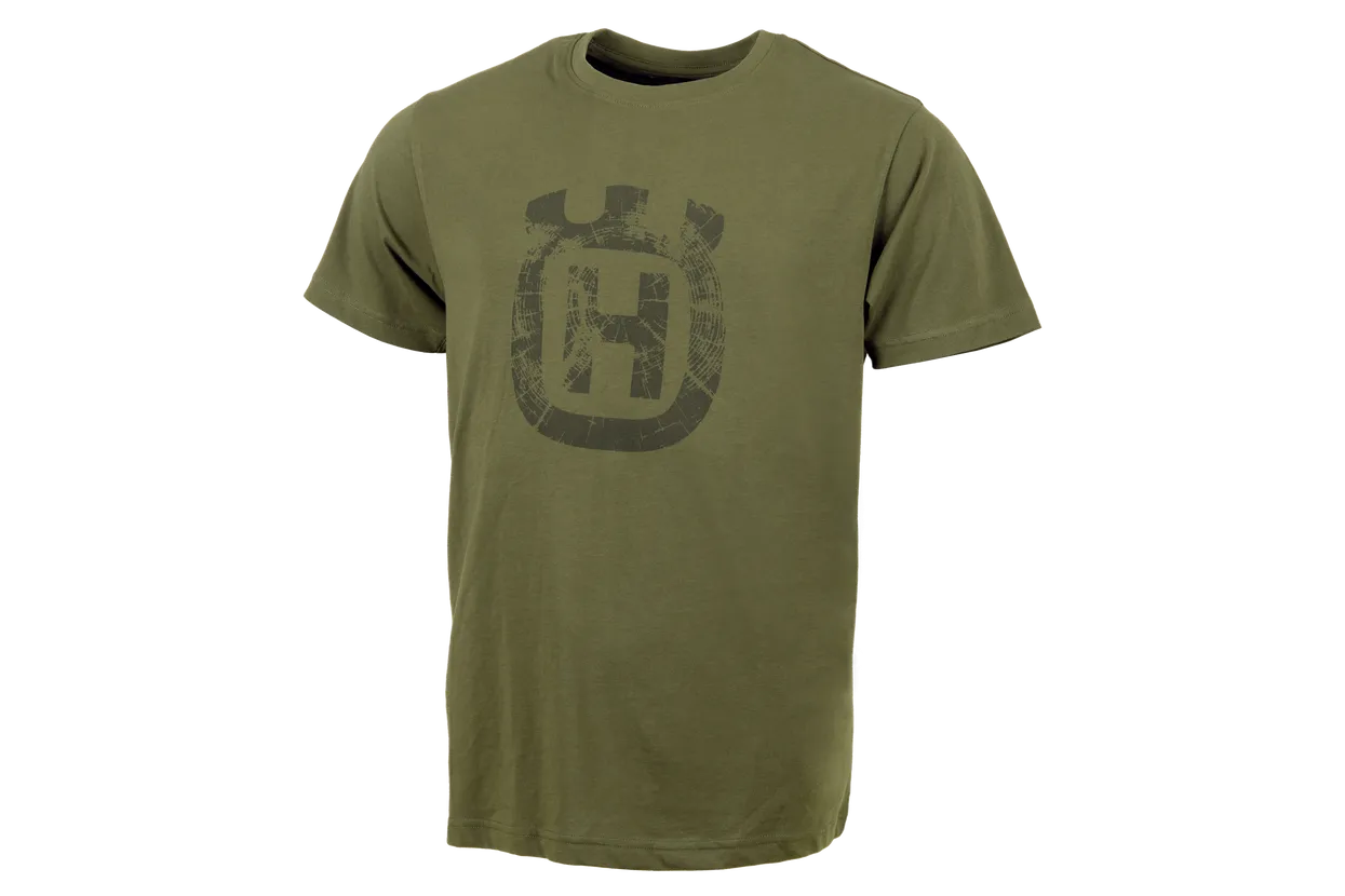 Den skogsgröna färgen tillsammans med den karaktäristiska trädringsdesignen ger en tydlig koppling till natur och skog. T-shirten har en bekväm unisexpassform och är perfekt både för arbete och fritid.